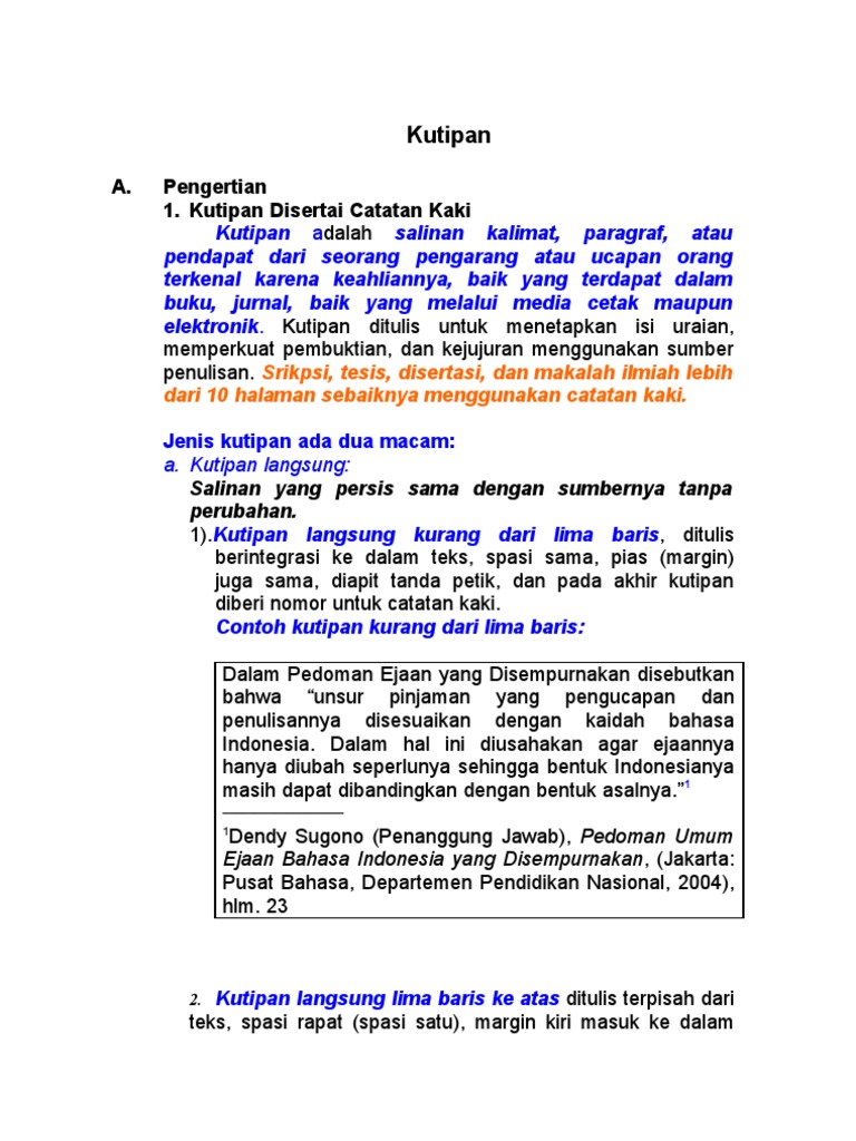 Selain contoh kutipan langsung dan tidak langsung dan contoh kata pengantar, cara penulisan daftar pustaka dan tata cara penulisan catatan kaki pun juga mesti diketahui, terutama saat menulis karangan ilmiah, semi ilmiah, dan non ilmiah. Catatan kaki biasanya dicetak dengan huruf lebih kecil daripada huruf di dalam teks guna menambahkan rujukan uraian di dalam naskah pokok. Maka informasi tersebut akan ditulis dalam bentuk deskripsi teks yang ertulis dan akan diletakkan di. Catatan kaki adalah keterangan yang dicantumkan pada margin bawah pada halaman buku. Jokowi adalah presiden ke 7 republik indonesia (fu) 2. Contoh catatan kaki (footnote) dari internet jika kamu mengambil kutipan catatan kaki dari internet, maka format penulisan catatan kaki (footnote) adalah sebagai berikut catatan kaki harus dibuat pada sebuah karya tulis terutama jika anda mengutip kalimat atau pernyataan dari berbagai sumber. Catatan kaki adalah catatan yang berada di bagian bawah dari halaman karya ilmiah. Contoh catatan kaki jika sumbernya dari artikel. Contoh catatan kaki dari buku. Mempelajari beberapa contoh penulisan kutipan, catatan kaki, dan daftar pustaka dari sumber yang berbeda. Pustaka sinar harapan, 1994), hlm. Contoh penulisan catatan kaki via contohxsurat.co. Kutipan digunakan untuk mendukung argumentasi penulis.